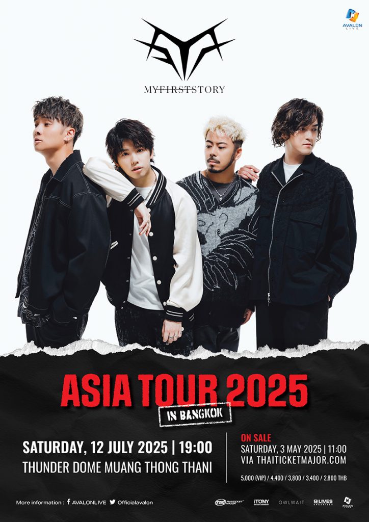 และแล้วเวลาที่แฟนชาวไทยรอคอยก็มาถึง! เตรียมตัวให้พร้อมกับคอนเสิร์ตเต็มรูปแบบครั้งแรกของพวกเขาในประเทศไทย MY FIRST STORY ASIA TOUR 2025 IN BANGKOK วันเสาร์ที่ 12 กรกฎาคม 2568 ณ ธันเดอร์โดม เมืองทองธานี