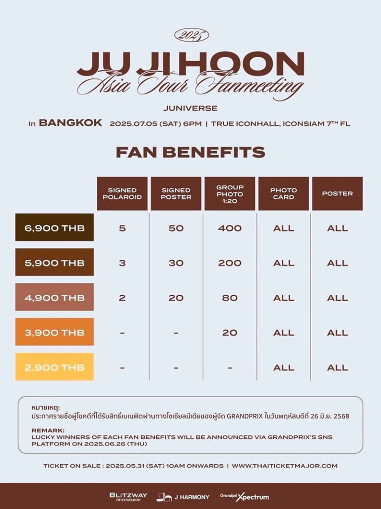 งานนี้ไม่เหมือนใครแน่นอน!! ไม่เพียงแค่แฟนคลับชาวไทยจะได้พบกับพระเอกขวัญใจที่ทำให้หัวใจสั่นระรัว แต่จูจีฮุนเองก็อยากจะพาทุกคนท่องไปในจักรวาล ‘JUNIVERSE’ ที่เต็มไปด้วยเสน่ห์และความอบอุ่น พร้อมกับการสัมผัสโมเมนต์สุดฟินที่รอคอยมานานหลายปี นอกจากนั้นแฟนๆ ยังมีลุ้นสิทธิพิเศษสุดเอ็กซ์คลูซีฟที่จะพาคุณเข้าใกล้โอปป้าได้มากกว่าที่เคย!! เล็งที่นั่งให้แม่นและเลือกตำแหน่งที่ใช่ของหัวใจคุณ!
