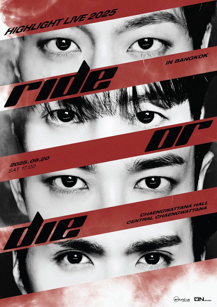 เตรียมพบกับคอนเสิร์ตเต็มรูปแบบ “HIGHLIGHT LIVE 2025 [RIDE OR DIE] IN BANGKOK” ในวันเสาร์ที่ 20 กันยายน 2568 ณ แจ้งวัฒนะฮอลล์ เซ็นทรัลพลาซ่า แจ้งวัฒนะ โดยผู้จัด O.N worldwide ที่เตรียมขนทุกพลังความมันส์ ความอบอุ่น และโมเมนต์แห่งความประทับใจมาให้แบบจัดเต็ม