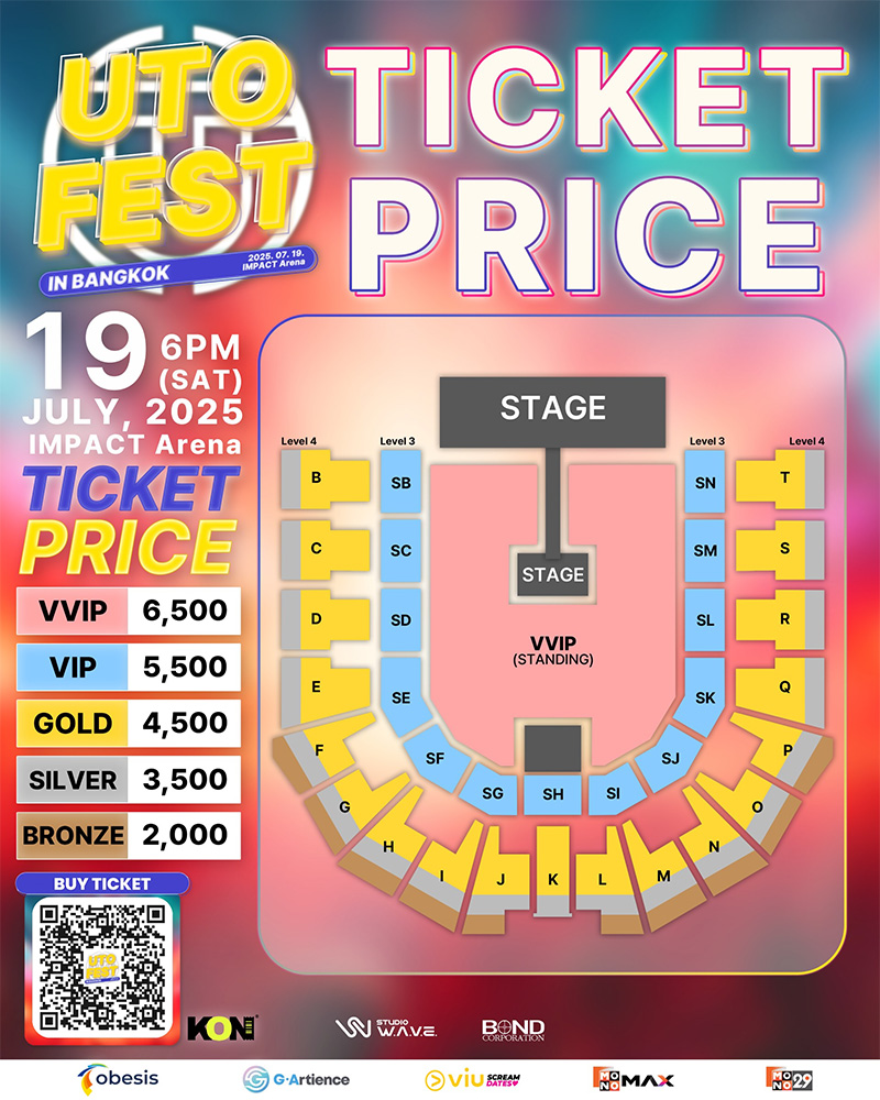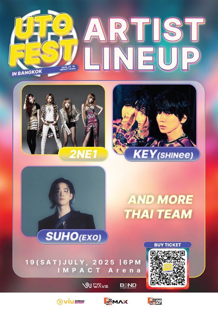 กลับมาอีกครั้งกับความสนุก ความมันส์แบบจัดเต็มของปรากฏการณ์คอนเสิร์ตที่ไม่ควรพลาดกับไลน์อัพศิลปินสุดฮอต SUHO (EXO), KEY (SHINee), 2NE1 และศิลปินเซอร์ไพร์สสุดฮอต ที่จะมาเขย่าเวที พร้อมระเบิดความมันส์ในงาน 2025 UTO FEST IN BANGKOK! (2025 ยูโต เฟส อิน แบงค็อก) วันเสาร์ที่ 19 กรกฎาคม 2568 ณ IMPACT Arena (อิมแพค อารีน่า) บัตรราคา (VVIP) 6500, (VIP) 5500, (GOLD) 4500, (SILVER) 3500 และ (BRONZE) 2000 บาท พร้อมรับ Special Fan Benefit มากมาย อาทิ Artist Sign Poster, Uto fest Light Stick, Official Poster, Round Hand Fan