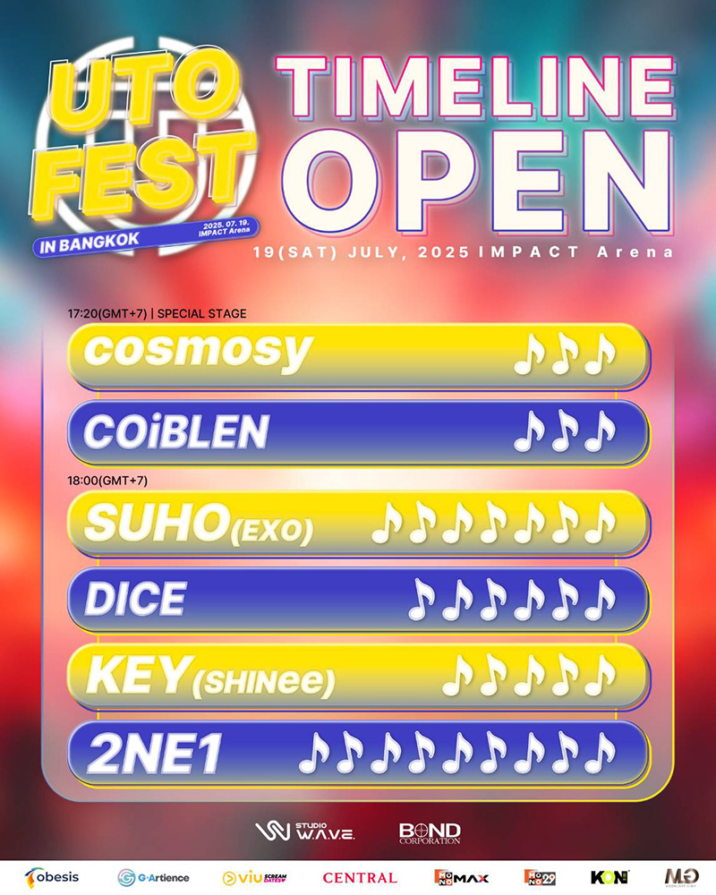 เสริมทัพความสนุก จัดเต็มจาก SUHO (EXO), KEY (SHINee) และ DICE ด้วย นอกจากนี้ยังจะมี Special Stage จากศิลปินรุ่นใหม่ อย่าง วง cosmosy เกิร์ลกรุปจากประเทศญี่ปุ่น และ COiBLEN ศิลปินสุดพิเศษที่จะมาช่วยกันเติมพลังความมันส์กันให้กับเวที 2025 UTO FEST IN BANGKOK (ยูโต เฟส อิน แบงค็อก) วันเสาร์ที่ 19 กรกฎาคม 2568 ณ IMPACT Arena (อิมแพค อารีน่า) บัตรราคา (VVIP) 6500, (VIP) 5500, (GOLD) 4500, (SILVER) 3500 และ (BRONZE) 2000 บาท