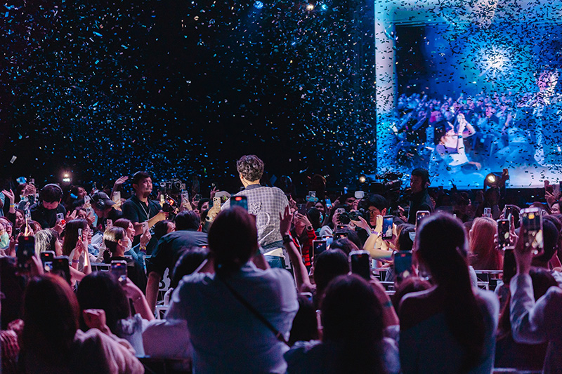 “ช่วงที่ทำแฟนมีตติ้งในหลายๆ ประเทศ ผมรู้สึกแบบนี้ครับ เราอาจเป็นคนที่ไม่ได้รู้จักกัน ผมไม่รู้ว่าผมเป็นใคร ไม่คิดว่าทุกคนจะมอบความรักให้ผมขนาดนี้ การสละเวลามาเพื่อผม เอาของขวัญดีๆ มามอบให้กับผมแบบนี้ ผมรู้สึกได้แค่คำว่าขอบคุณ ผมคิดเสมอว่าจะทำยังไงเพื่อตอบแทนความรักที่ทุกคนมอบให้ผม ผมพยายามไม่ร้องไห้ แต่ประโยคที่บอกว่า ขอบคุณที่เกิดมา ขอบคุณที่เข้ามาในชีวิตของพวกเรา มันทำให้ผมรู้สึกน้ำตาคลอเลยครับ เช่นกันครับ ผมก็ขอบคุณทุกคนที่เข้ามาเป็นส่วนหนึ่งในชีวิตของผมนะครับ เรามามีความสุขไปด้วยกัน มาใช้ชีวิตมีความสุขไปด้วยกันนะครับ และเพราะทุกคนวันนี้จะเป็นวันที่ผมลืมไม่ลงเลยครับ (ภาษาไทย) รักนะครับ”