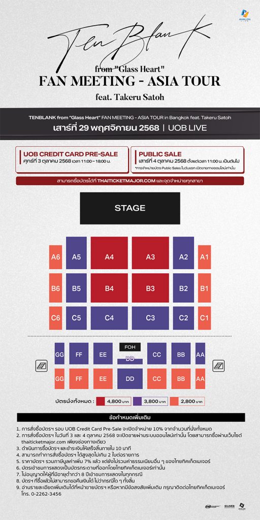 AVALON LIVE ขอเชิญทุกคนมาร่วมสร้างความทรงจำไปด้วยกัน ในงาน TENBLANK from “Glass Heart” FAN MEETING – ASIA TOUR in Bangkok feat. Takeru Satoh แฟนมีตติ้งครั้งแรกของทาเครุ ซาโต้ที่ประเทศไทย