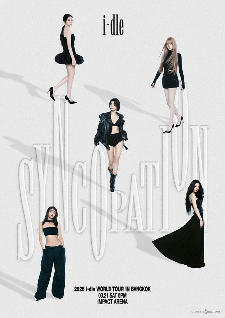 NEVERLAND ชาวไทยเตรียมตัวให้พร้อม! สาวๆ i-dle กลับมาทวงบัลลังก์เกิร์ลกรุ๊ปสุดฮอตแห่งยุค พร้อมระเบิดความมันส์ให้แฟนๆ ได้แดนซ์จัดเต็มในคอนเสิร์ต “2026 i-dle WORLD TOUR [Syncopation] IN BANGKOK” จะจัดขึ้นในวันเสาร์ที่ 21 มีนาคม 2569 ณ อิมแพ็ค อารีน่า เมืองทองธานี